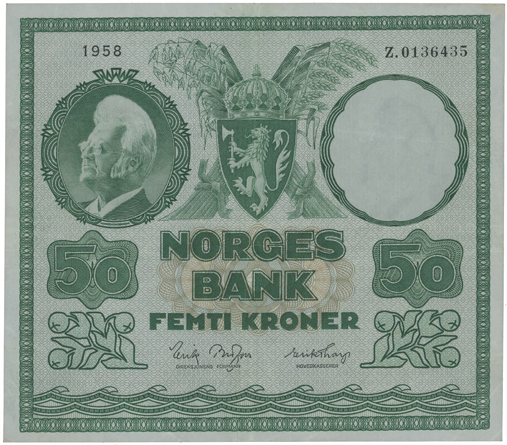50 kroner 1958. Z.0136435. Erstatningsseddel/replacement note.