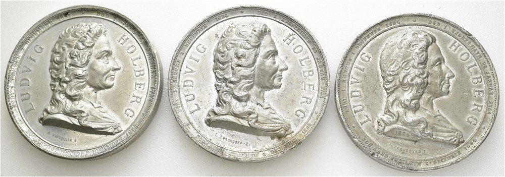 Ludvig Holberg (1684-1754). Lott 3 medaljer. Tinn. 50 mm