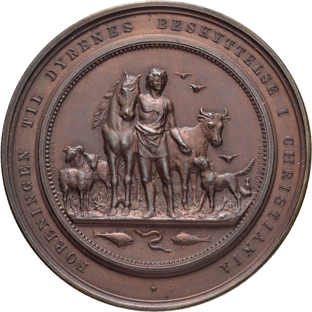Foreningen til Dyrenes beskyttelse i Christiania 1886. Bronse. 50 mm; 52,55 g