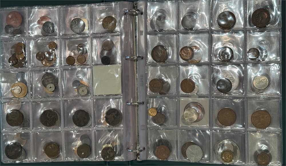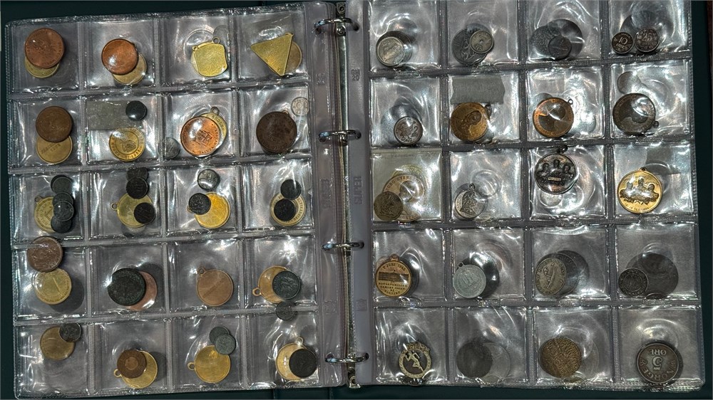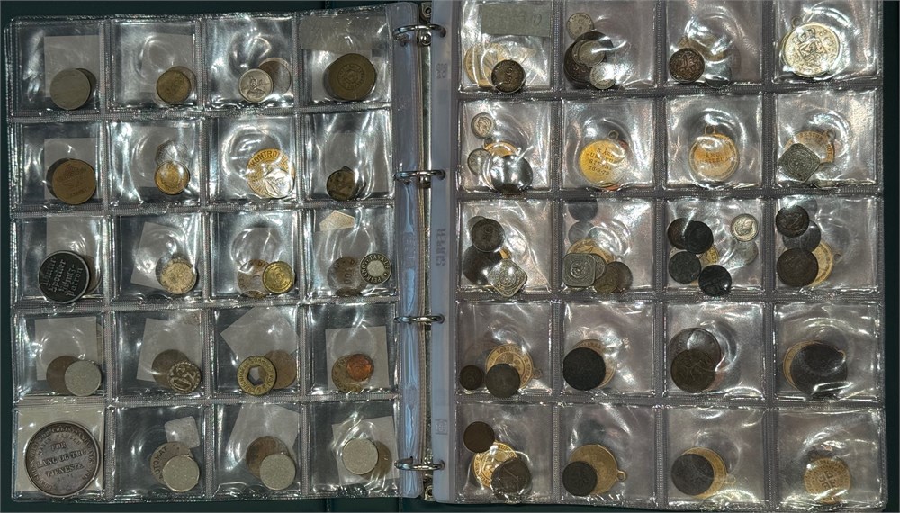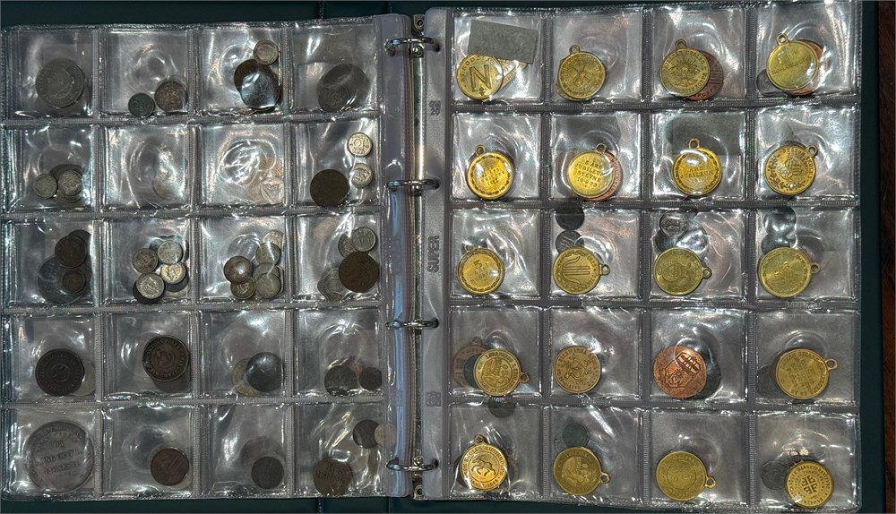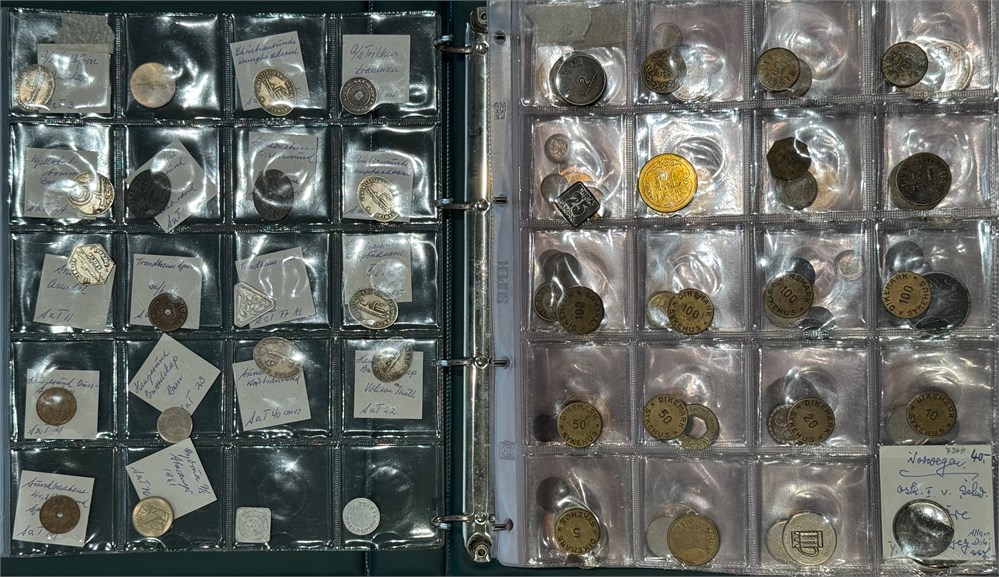 - Myntalbum med norske polletter og utenlandske mynter (15246361)
