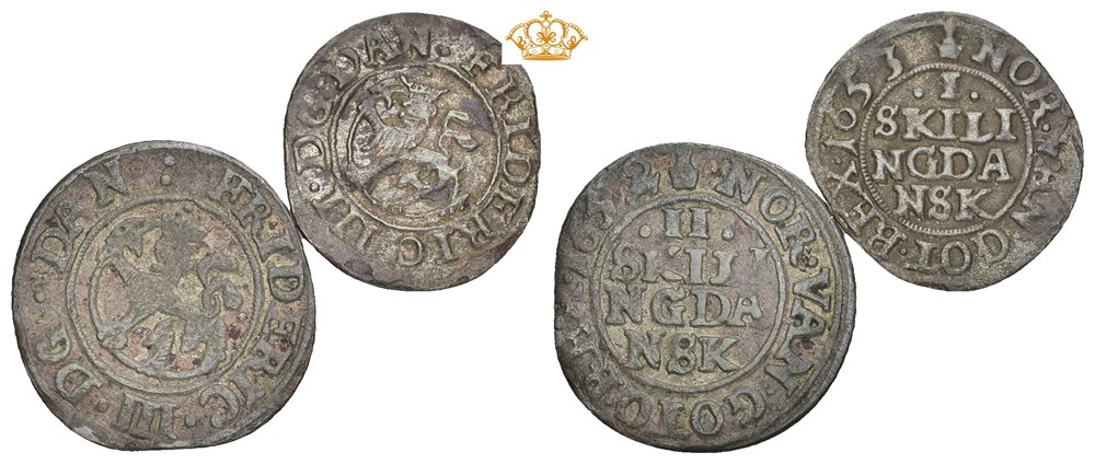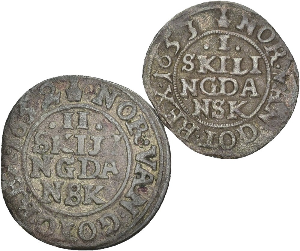 Lott 2 stk. 2 skilling 1652 S.32 og 1 skilling 1653
