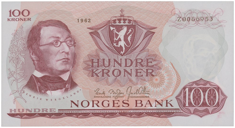 100 kroner 1962. Z0066953. Erstatningsseddel/replacement note.