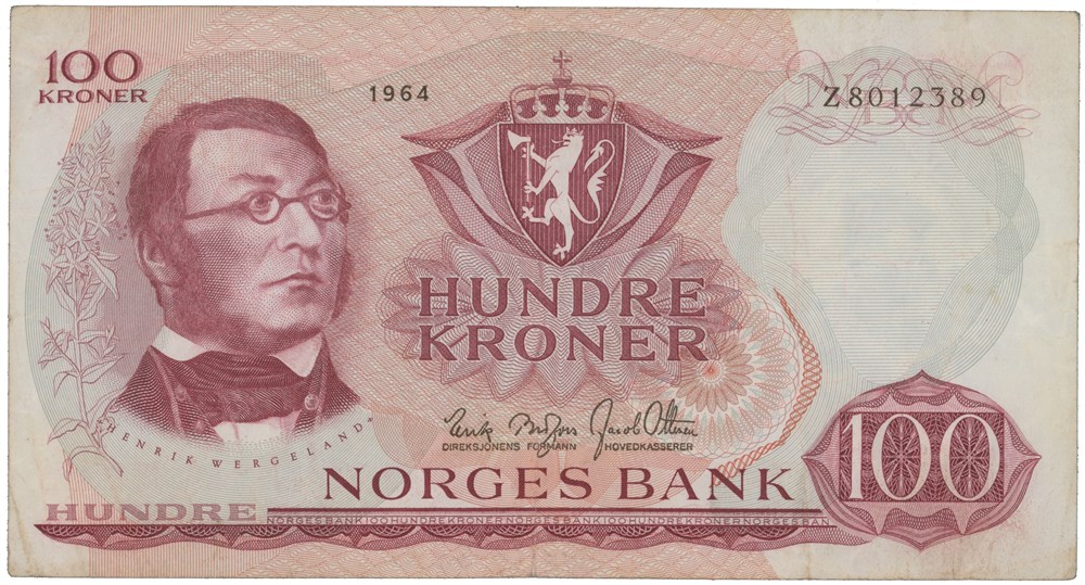 100 kroner 1964. Z8012389. Erstatningsseddel/replacement note.