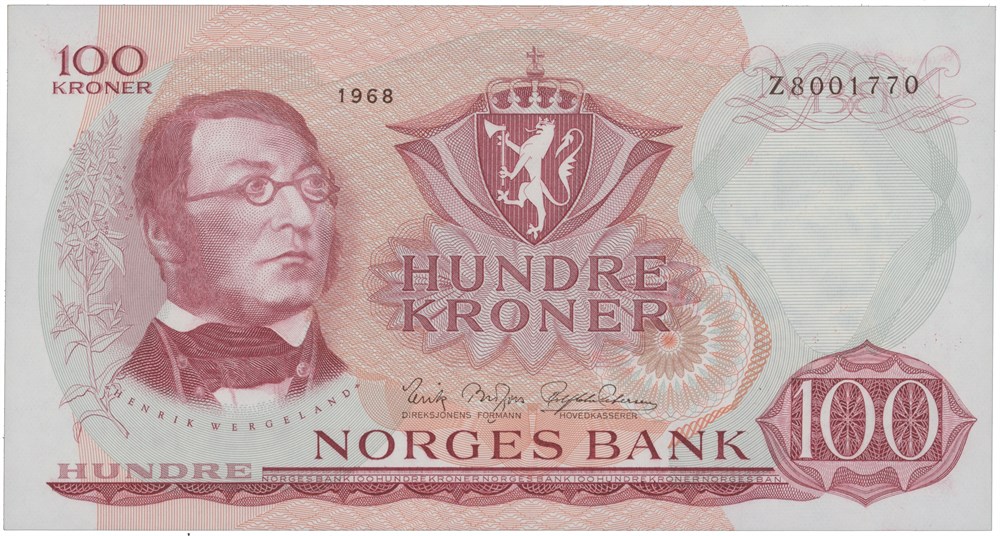 100 kroner 1968. Z8001770. Erstatningsseddel/replacement note.