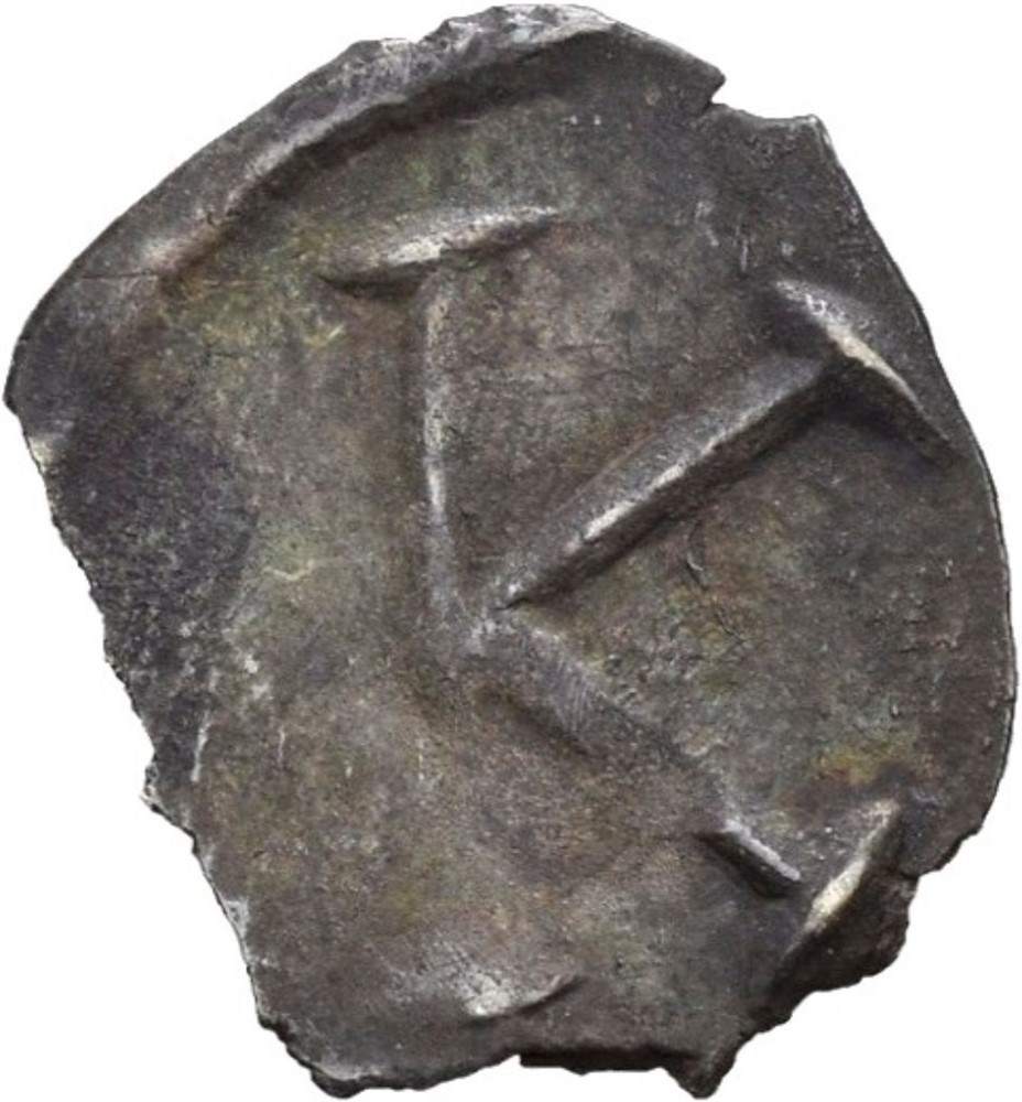 Justinian I (?) (Anonym) 527-565, 1/2 siliqua (?), Constantinople. (?). (0,43 g) Byste med hjelm (Constantinopolis?) mot høyre/Stor K