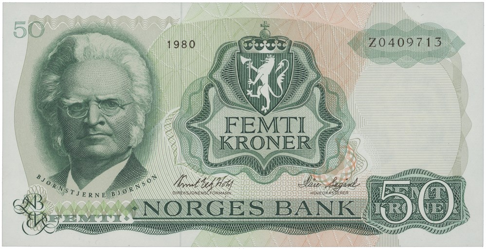 50 kroner 1980. Z0409713. Erstatningsseddel/replacement note.