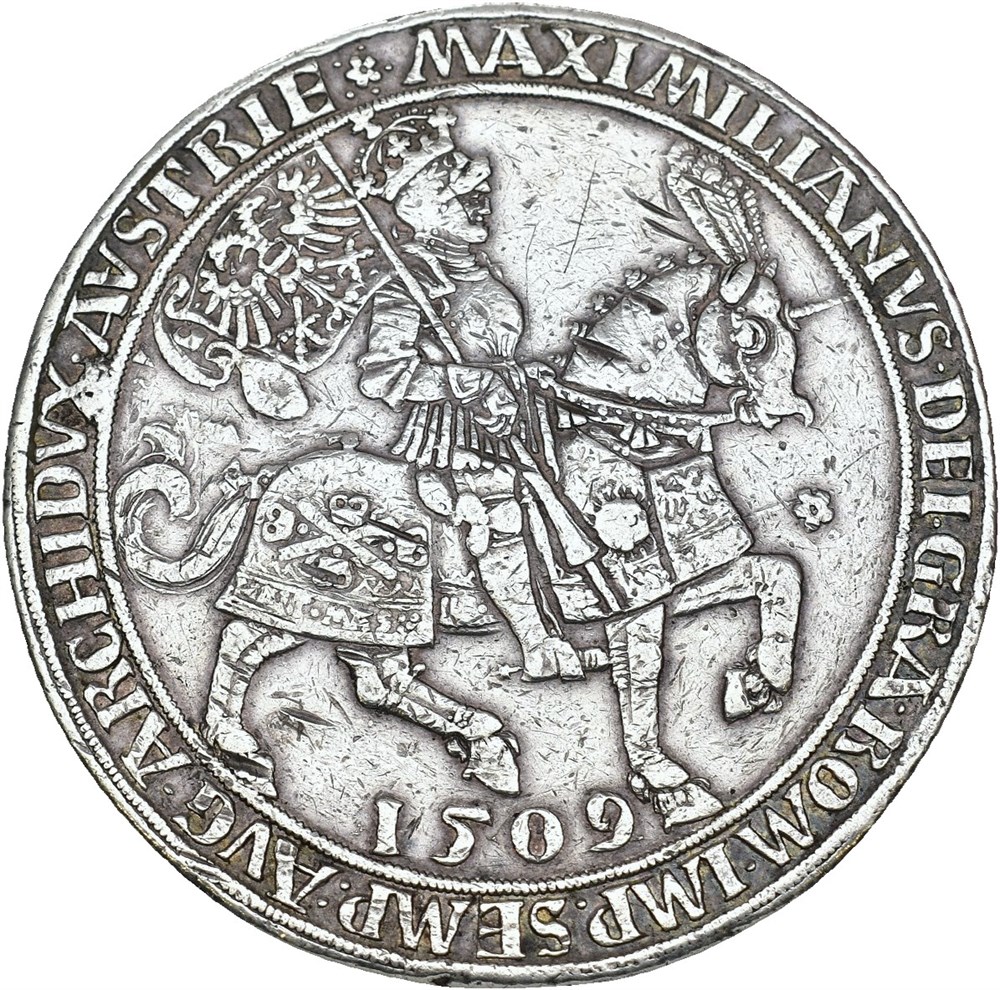 3 Taler / Schauguldiner 1509, struck 1517 in Antwerp. 83.10 g. Dies by Ulrich Ursentaler. Scratches on obverse. Rare.