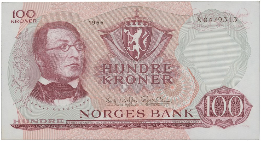 100 kroner 1966. X0479313. Erstatningsseddel/replacement note.