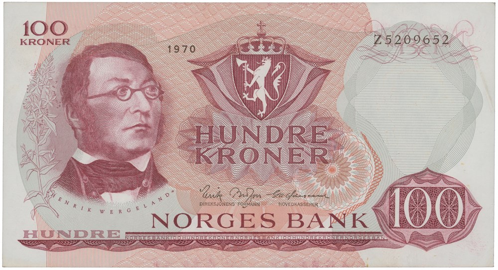 100 kroner 1970. Z5209652. Erstatningsseddel/replacement note (5-million).