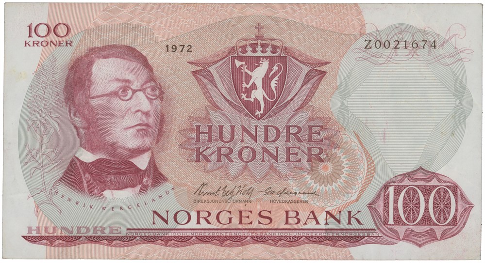 100 kroner 1972. Z0021674. Erstatningsseddel/replacement note.